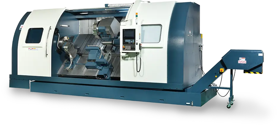 JOHNFORD’s slant-bed light-to-medium CNC lathes offer a wide range of accessories such as sub-spindles, live tool turrets, and steady rests.